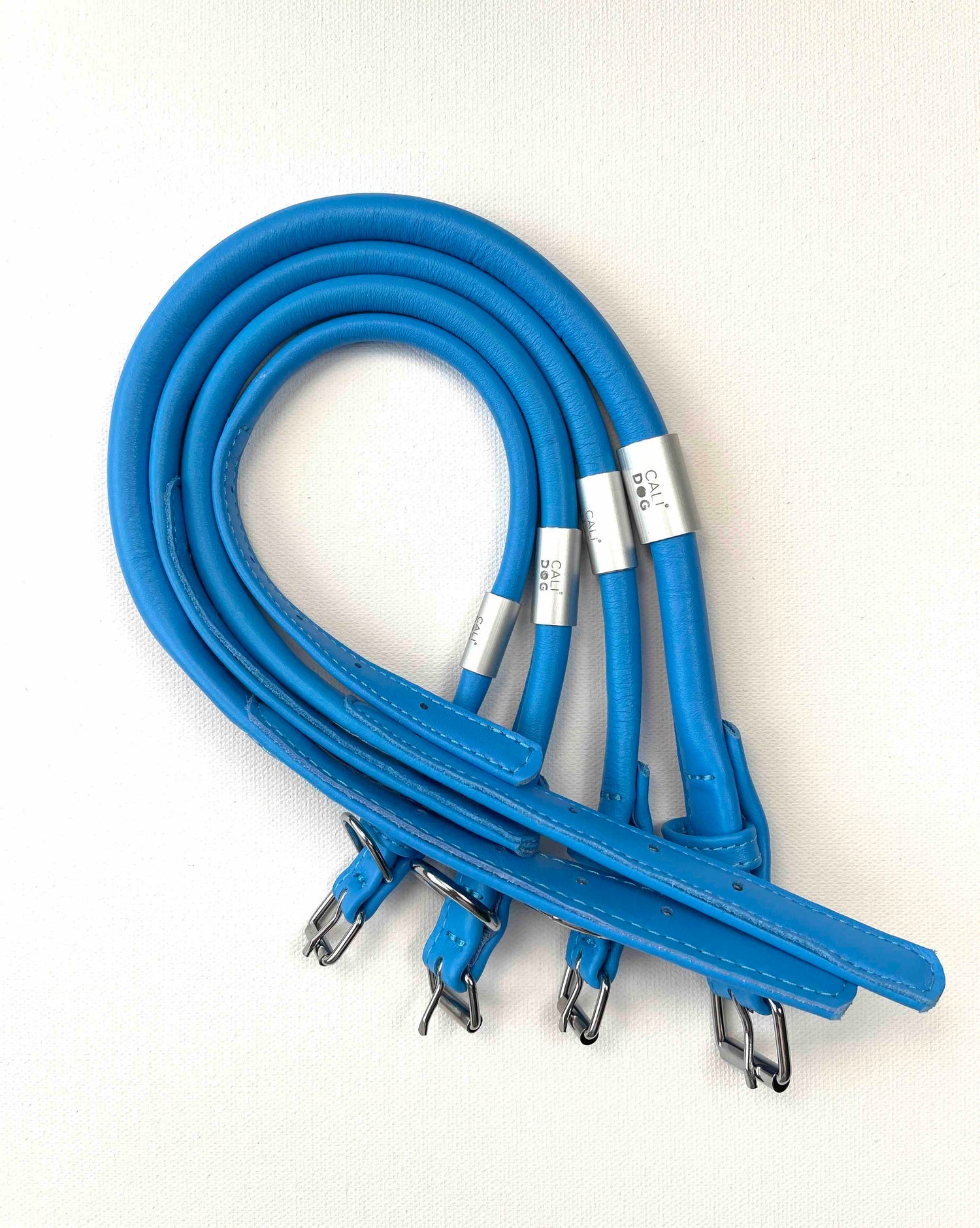 Blue Rolled Leather Dog Collar and Leash Set